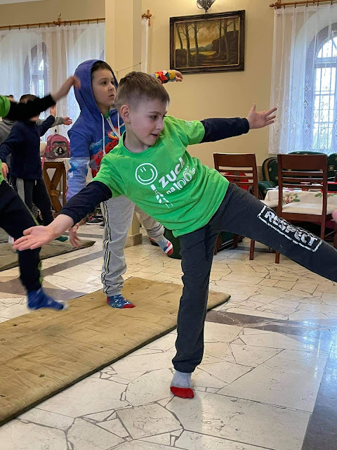 W zdrowym ciele zdrowy zuch, tak więc nasze zuchy z 22GZ Łowcy Przygód z Wirowa, kończąc dziś zdobywanie sprawności Ratownik uczyły się jogi dla dzieci, robiły zdrowe deserki i wzięły udział w akcji Fundacji WOŚP "Nie bij mnie kochaj mnie"! Przypominały sobie też jak prawidłowo zabandażować kończynę. Ich pacjentami były... Ich Misie.