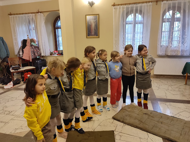 Kto nie lubi pierogów? Oj! Kiedy o to pytaliśmy wiele było rąk w górze.... Ale... jak się okazało, zuchy, jak same ulepiły pierogi, to i zjadły je z apetytem. Warsztaty robienia pierogów, były jednym z elementów naszej zbiórki wigilijnej. Wiele było przy tym zabawy i radości. Wszyscy ubrani w fartuszki uczyliśmy się, jak robić ciasto i jak lepić pierogi. UDAŁY SIĘ nam PYSZNE! Z pierogami przyszedł więc czas na dzielenie się opłatkiem i naszą zuchową wieczerze wigilijną z zabawami i kolędowaniem. I wiecie co??? Mikołaj zapukał do naszego okna. Przysłał nam list.Okazało się, że Elfy nasze prezenty wysłały, aż do Ameryki.... Na szczęście dotrą do nas już niedługo, o czym oczywiście napiszemy!